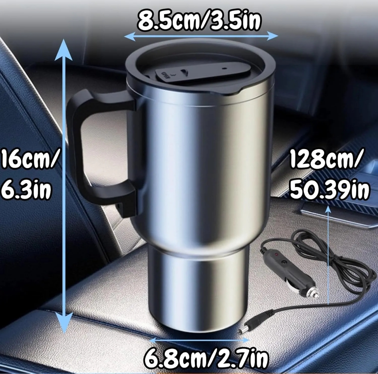 Mantén tu café, té o bebida favorita siempre caliente mientras conduces. Esta taza térmica de acero inoxidable se conecta directamente al encendedor de tu vehículo (12V), conservando la temperatura por más tiempo. Su diseño resistente, tapa antiderrames y asa ergonómica la hacen ideal para viajes, trabajo y carretera. Perfecta para quienes pasan mucho tiempo en el auto y quieren disfrutar siempre de una bebida caliente.